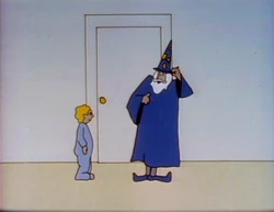 Cartoon | A wizard walks through a door. A boy in pajamas tries to imitate him without success. (First: Episode 1042) |