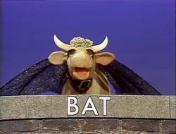 Muppets | Gladys now sounds out the word BAT and tries flying, which also doesn't pass muster. (First: Episode 1670) |