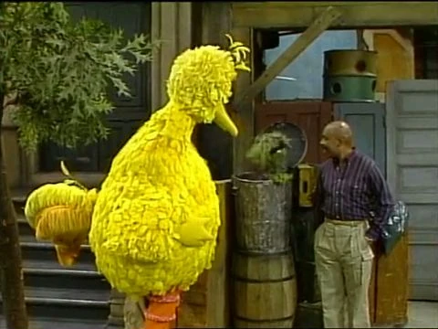SCENE 4 | Back home Grundgetta tells Big Bird a grouchy riddle, which Big Bird doesn't understand. Gordon announces the sponsors, and the credits follow. |