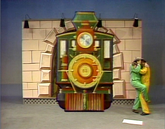 Cast | Bob and Luis put together two halves of a painting of a train tunnel. When they fit the parts together, a train goes through the tunnel and zooms to take up the entire screen, frightening Bob and Luis so much, they take down the tunnel again. (First: Episode 0549) |