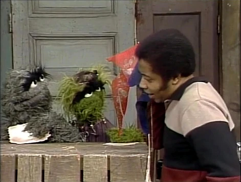 Muppets / Cast | Oscar sings "One of These Things" over a four-way split screen containing Gordon, Bob, David and Slimey, all dressed in tuxedos. (First: Episode 1904) |