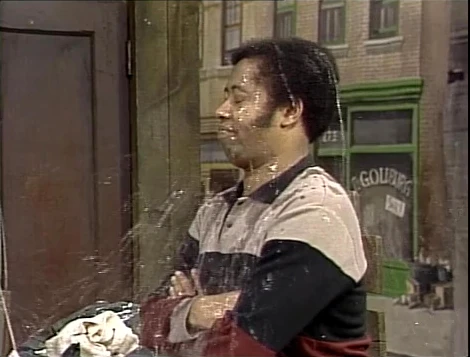 SCENE 5 | David pesters Grundgetta and another Grouch (Martin P. Robinson) with questions regarding a set up they have by Oscar's trash can. They tell him they're judges for the Grouch diving contest and the next dive is about to begin. Oscar emerges from his can in bathing suit and diving cap, intending to do a cannonball into his swimming pool. David doesn't understand - how can the judges see Oscar's dive if it's occurring inside the can, out of their view? Grundgetta tells him to just watch and find out. David peers into the can as Oscar dives and receives a face full of water. The judges score Oscar a 3 out of 10; he barely got David wet at all! |