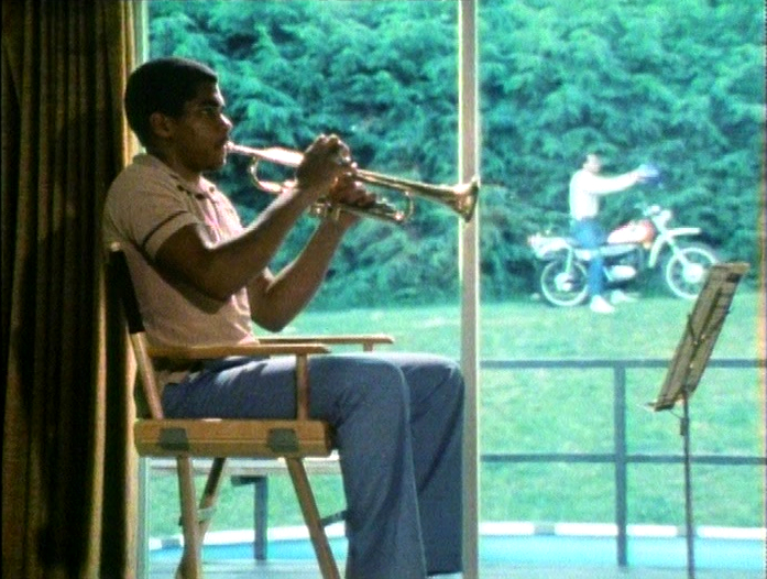 Film | Sounds Around the House v2: chimes, snoring, a boy pretending to be an airplane, a man playing a trumpet, and a motorcycle outside. (First: Episode 1713) |