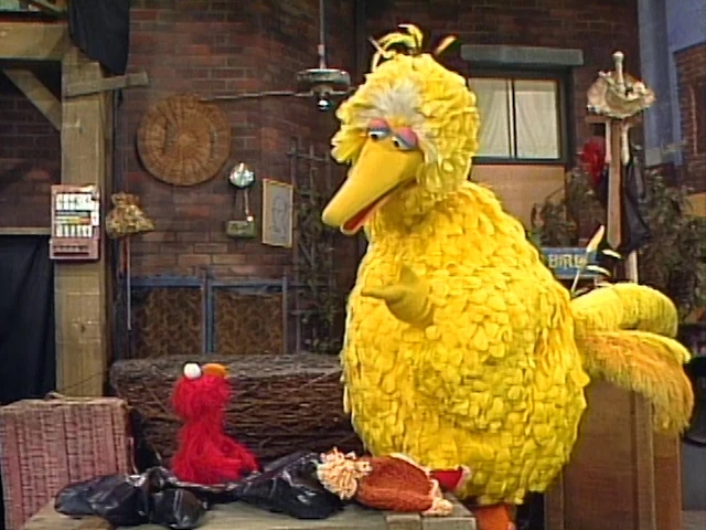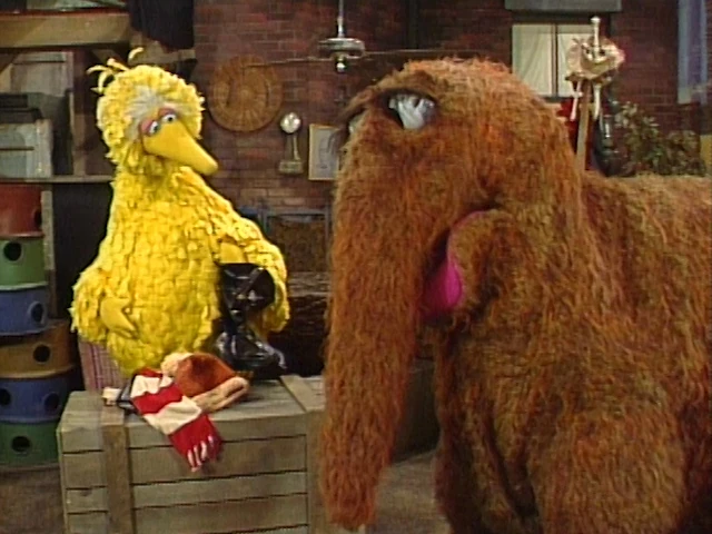 SCENE 5 | Big Bird returns to his nest with the items from his game with Elmo and is greeted by Snuffy who, upon seeing the winter clothes, gets angry at him for going to the North Pole without him. Big Bird explains that he used them for a game, Snuffy apologizes for jumping the gun, and suggests they play a game about matching pieces of clothing to what parts of the body they go on. Gordon announces the sponsors and the credits follow. So ends the 15th season of Sesame Street. |
