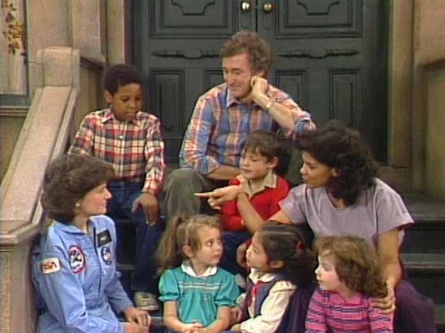 SCENE 2 | Maria and Bob sit on the stoop of 123 Sesame Street talking with astronaut Sally Ride and her recent NASA mission. Some kids come by, and they're invited to join them in asking some questions about her career and what it's like traveling to space. (unscripted) |