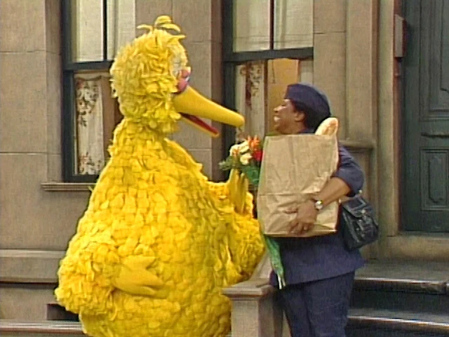 SCENE 3 | Big Bird greets Susan in her nurse's uniform coming home from work with flowers and dinner for Gordon as a surprise. They part, and Big Bird bumps into Gordon who has the same items for Susan, also as a surprise. They part and Big Bird says it will be interesting to see how adults deal with this situation, so he watches Gordon and Susan interact with one another on the street. As they reveal their surprises, they're both delighted at what they have done for one another, and decide to compromise on their evening plans, but can't decide who will do the dishes. Maria happens by, gets an invite to dinner, and Big Bird is surprised at how well it all turned out. |