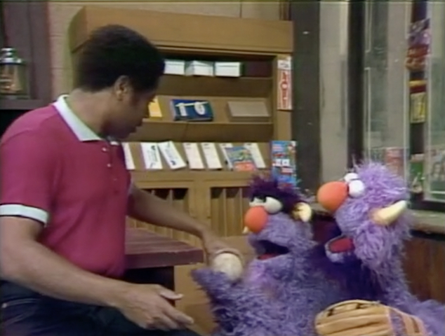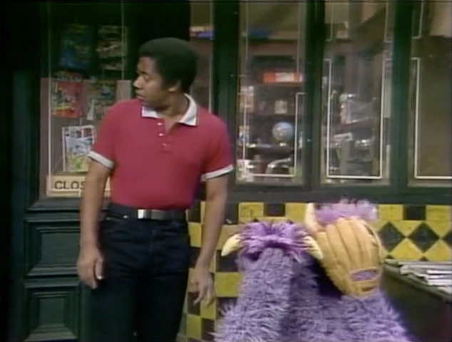 SCENE 4 | The Two-Headed Monster wears a baseball glove, but doesn't have a ball, so they go to Hooper's to buy one. When they reach the door, they're sad to see the closed sign, but David lets them in and eventually realizes they need a ball. As the monster turns to leave, they become sad again as the closed sign now faces inward. |