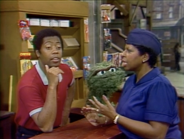 SCENE 3 | Oscar the Grouch enters Hooper's as David and Susan are still trying to remember the name of that seventh dwarf. He asks for an onion and a tube of anchovy paste, but nobody hears him over the dwarf name guessing. He asks again, more forcefully this time, and does a take to the camera annoyed at being ignored and threatening to go to another store. His grouchiness reaches a level that prompt David and Susan to remember the seventh dwarf: Grumpy! They shower him with thanks as Oscar wishes he hadn't done whatever he did to assist. |