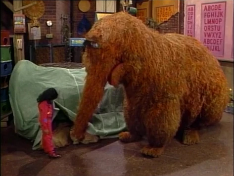 SCENE 3 | While Olivia and Bob tell Maria about what happened earlier, Uncle Wally uses bags of cabbages covered in a large sheet to simulate a sleeping Mrs. Snortleoutagus lying next to Big Bird's nest. When he leaves, Snuffy comes by with Tatyana and catches a whiff of the cabbages. The two work together to move the sacks out of the way to ensure nobody gets hurt in some manner. |