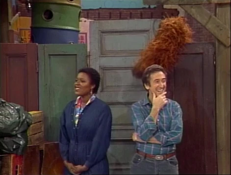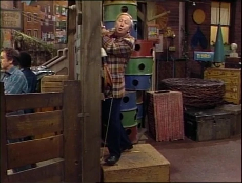 SCENE 2 cont'd | After the coast is clear, Uncle Wally situates himself behind the doors with an air tube and blows on them. He comes out from hiding and claims "Snorty" was responsible, while Big Bird still asserts it was instead Snuffy. All four begin to disagree. |