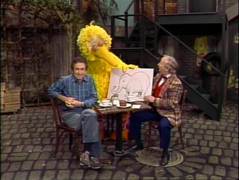 SCENE 1 | Uncle Wally shows off a drawing of a friend he wants Bob and Big Bird to meet - Mrs. Snortleoutagus, who greatly resembles Big Bird's friend Mr. Snuffleupagus. The two go off to fetch their respective quadruped friends, while Bob laughs at how ridiculous this all sounds. |