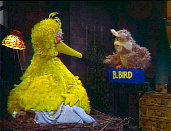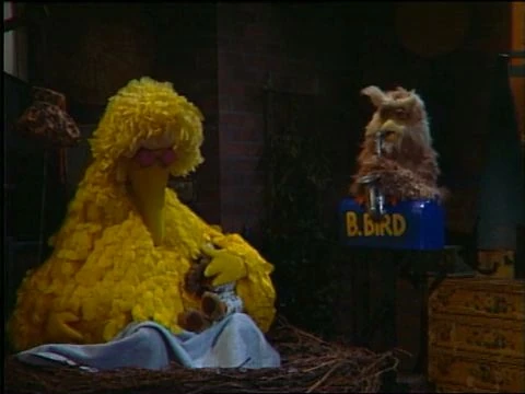 SCENE 4 | Hoots is getting bored, so he starts playing his saxophone. This wakes up Big Bird, who is not pleased. Hoots lulls him back to sleep with a soothing sax tune. Bob announces the sponsors, and the credits follow. |