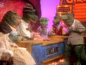 The family spends a month practicing for their appearance, and Earl starts to enjoy spending time with the family, no longer caring about TV. When they appear on the game show, they compete against the Nielsen family, a family of mammals who spend all of their free time watching television. After host Buddy Glimmer interviews the families, he presents the categories, all of which have to do with TV. Baby foolishly presses the button after a question is asked, but the Sinclair's lack of TV access has caused them to forget about television. Eventually, the Nielsens are in the lead, and Fran finds out that Earl's original motive for being on the game show was to win a television set. However, Earl tells her that he enjoyed spending time with his family, and would never trade the time they spent for television. He also says that if he had another chance to win that TV, he wouldn't take it.
