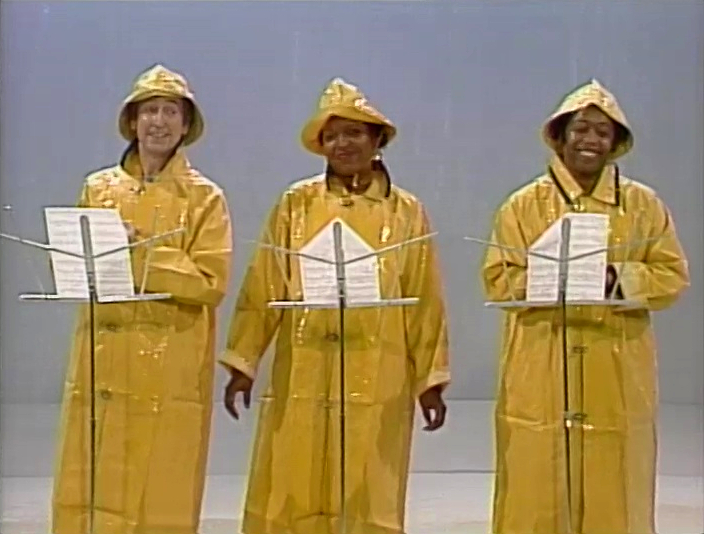 Cast | Bob, Olivia, and David sing a song about the rain...outside, on a rainy day. (First: Episode 1921) |