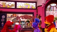 They politely inform the penguins that they're using Gonger's property, but Funella convinces him to let them keep it for the time being; they want their guests to remain happy. Gonger complies, but needs to find a new gong. Cookie Monster empties a platter of cookies to use, but it doesn't make the same gong-like sound (but causes Cookie to vibrate heavily). Furgus probes the office for a gong and comes across a tiny one, which attracts tiny birds instead of monsters. He finds a giant one, which calls a dinosaur guest down for tea.