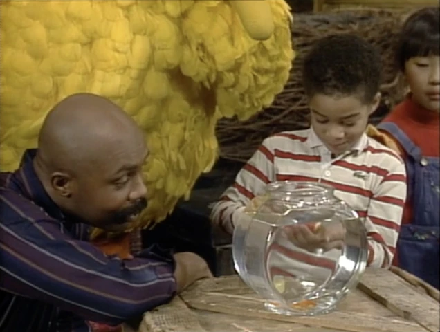 SCENE 3 | Gordon and Big Bird observe the current pets at the Pet Show, including Aole's goldfish Tom and Jerry, Kelly's parrot Mabel, and Kevin's hermit crabs. After they discuss how the animals live, Oscar wants to show Gordon another pet he's entering in the show - a sock named Jacques. |