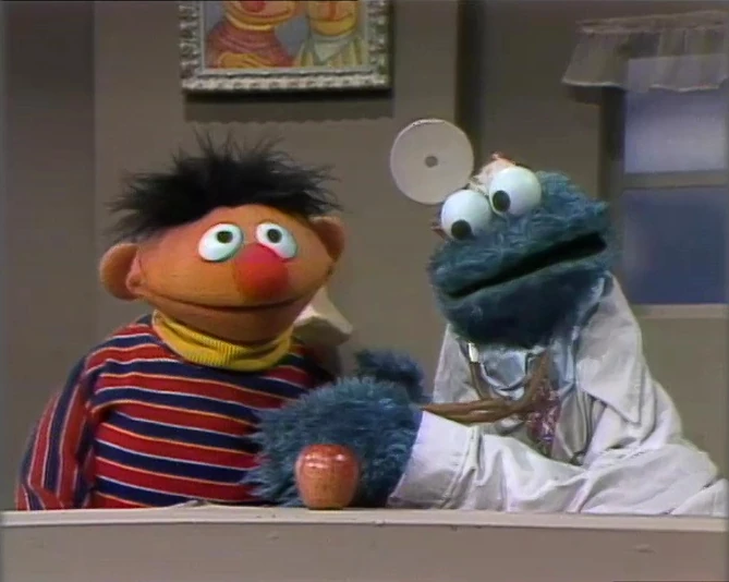 Muppets | Cookie Monster and Ernie: Dr. Monster — Cookie Monster works for Ernie's apple by pretending to be a doctor. (First: Episode 0691) |