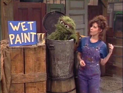 SCENE 1 | A painter (Ellen Greene) asks Oscar to keep an eye on her "WET PAINT" sign while she goes to get another paintbrush; Oscar reluctantly complies. David comes by and sees the sign, assuming it's part of Oscar's latest scheme, which Oscar denies. David picks up the sign and starts asking where the wet paint is, when the painter returns and admonishes David for ruining her sign. Oscar remarks, "That's what I like about life - things get all messed up sometimes without any effort at all." |