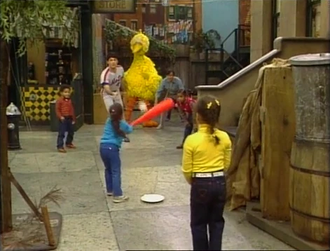 Insert | Maria joins the kids' stickball game in the park. Up at bat is a Muppet boy named Frankie, who's afraid of wearing his glasses because the other kids make fun of him. She shows him how important glasses can be and wearing them improves his swing. (First: Episode 1313) |
