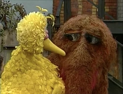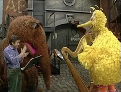 SCENE 3 | Big Bird interrupts Snuffy's rehearsal to ask him to play; Snuffy is busy, but agrees to play later. Big Bird keeps interrupting, asking to play now, as Snuffy gets more annoyed with him. Big Bird eventually storms off in a huff, wishing nobody else ever met Snuffy because he now has no time for his best friend. Maria assures him that Snuffy will still be his friend and recommends Big Bird find something of his own to practice while he waits for Snuffy. |