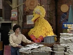 SCENE 4 | Maria comes by Big Bird's nest, where Big Bird is surrounded by piles of books, magazines, and newspapers. Maria inquires how he's able to practice reading so much, but Big Bird says he hasn't read anything - he's just practicing turning the pages. |