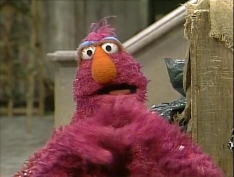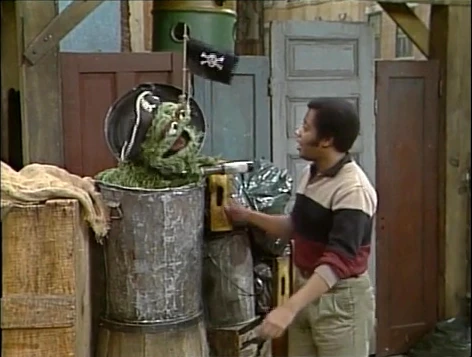 SCENE 3 | Oscar sees Telly approaching and states how no matter what kinds of tricks he always pulls on him, Telly never seems to respond in anger. He becomes determined to make Telly angry with tricks like throwing trash at him or the ol' spring-loaded snake in a can bit, but nothing seems to make him angry. Oscar erupts in frustration, so Telly tries to get angry anyhow. He gives a half-hearted effort, which doesn't really please Oscar. |