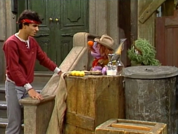 SCENE 3 | Oscar rattles a can and promotes his lemon-fish-ade to everyone on Sesame Street. Bob, Susan, and some kids come along and sing "One of These Things" about his pitcher containing three lemons and one fish. Everyone agrees that the fish doesn't belong with the lemons except for Oscar. Susan says she likes fish that isn't used for lemonade, so Oscar tries unsuccessfully to sell her more fish. |