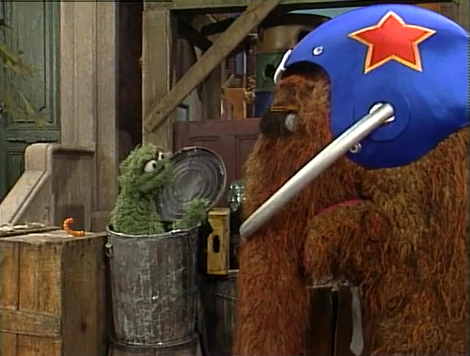 SCENE 2 | Gordon comes across Oscar reading his book of Grouch Rhymes to Irvine. As Oscar recites "Twinkle Twinkle Little Can" Gordon notices that none of the words in Oscar's book rhyme, which is just how Grouches like it. |