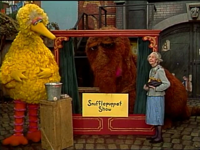 SCENE 2 | Snuffy puts on another Snufflepuppet show, hosted by Gus. First, they need someone who will guess which noises Big Bird makes. Big Bird invites Luis to play because Snuffy is too shy to ask, but Luis is too busy. Gus thinks Big Bird wasnβt convincing enough, so Snuffy musters up the courage to invite Mrs. Trump, but she has to go shopping. Snuffy tells Gus to try inviting someone this time so he invites Maria, but sheβs going to the hardware store. Big Bird has an idea of how to invite someone without askingβ¦ |