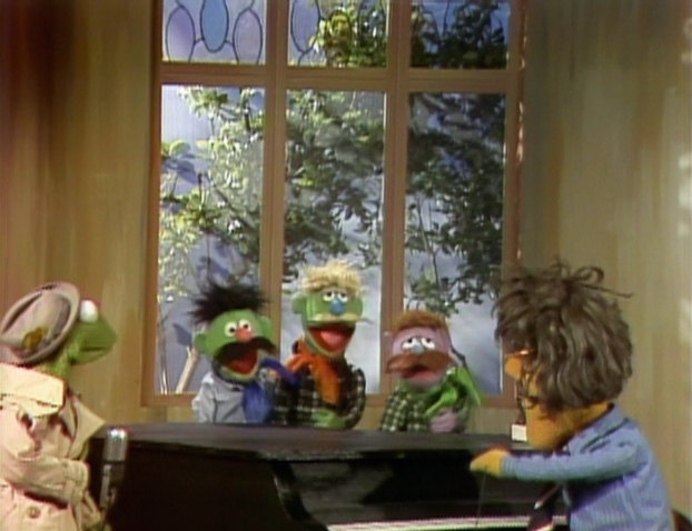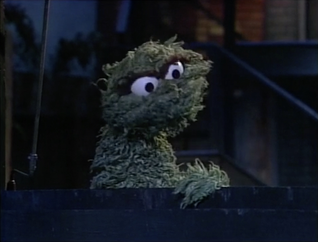 SCENE 1 | At night, Maria, Olivia, and Bob are getting ready to go home and go to bed. Meanwhile, Oscar the Grouch waits in anticipation (with the viewer) for what happens once they get inside and turn off their lights: the nocturnal jazz musician known as Hoots the Owl starts playing his saxophone and bothering everyone. Of course, Hoots apologizes for waking everyone up and starts playing a soft lullaby, which disappoints Oscar. |