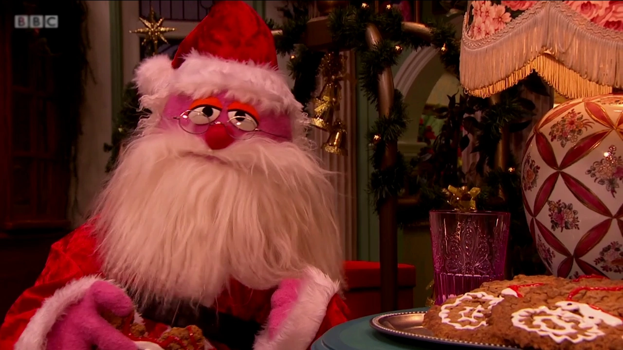 The family and Big Bird start caroling to the guests, who realize that they too forgot to remind Santa of their whereabouts, making them all sad. Funella and Furgus cut the caroling short to move onto decorating the tree. Everyone seems in good spirits, until Big Bird notices the tree topper is Santa, upsetting everyone, including The Count, who is now in the same situation.