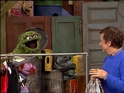 SCENE 4 | Mr. Macintosh hands out fruits from his cart, including a rotten banana for Oscar. Elmo announces the sponsors, and the credits roll. |