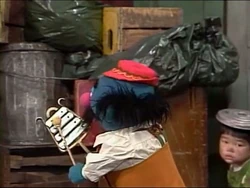 SCENE 2 | Buster the Horse interrupts today's Grouchketeer meeting to teach Oscar and the kids a new word - glockenspiel. Oscar likes the sound of the word, but not when he finds out it's a beautiful-sounding instrument. Buster hears the sound of a distant band playing one and starts singing a song about glockenspiels as an Anything Muppet man marches down playing the titular instrument. |