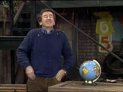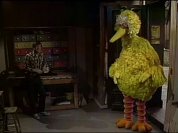 SCENE 5 | Big Bird eagerly awaits Luis to finish fixing a clock so it can strike five. When the time comes, Big Bird celebrates rush hour by hurriedly cleaning and closing up the Fix-It Shop for Luis. However, Luis points out that the shop closes at 6 o'clock, so Big Bird agrees to check with him in an hour to do it over again. Luis gets back to work as Gordon announces the sponsors. |