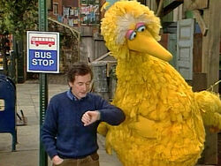 SCENE 4 | Big Bird finds Bob anxiously waiting for the bus. He explains if it doesn't arrive soon, he won't be able to beat the downtown, rush-hour traffic. Big Bird doesn't understand what "rush hour" is, so Bob explains before boarding his bus. Big Bird is intrigued and imagines what rush hour must be like... |