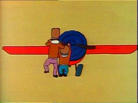 Cartoon | A cleaning lady (reminiscent of Carol Burnett's character) wanders into a music rehearsal room, plays each instrument, and puts all the sounds back into the wrong instruments. (First: Episode 0774) |