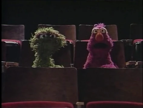 Insert | Sneak Peek Previews: Ostrich Ballet β Maria and Olivia observe Slimey using his tiny, worm TV set to watch "Sneak Peek Previews," where Telly and Oscar review a film about ostriches. After the show, Maria wonders why the two would argue over a film like that, finding she and Olivia having opposing views as well. (First: Episode 1964) |