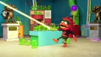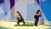 - The episode's first segment marks the fourth time that the series features the characters' recurring superhero and supervillain personas.