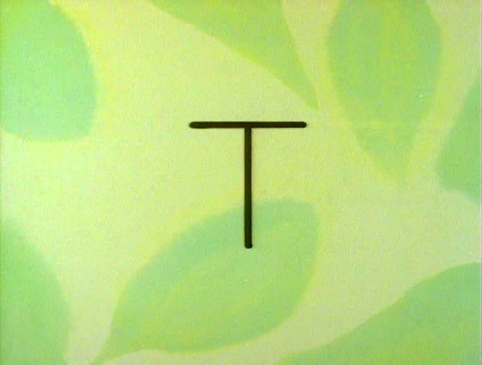 Cartoon | Violin and piano music plays over two inchworms who form an uppercase and lower case letter T. (no Gordon voiceover) |