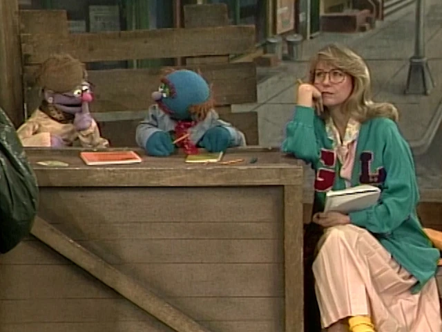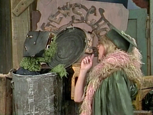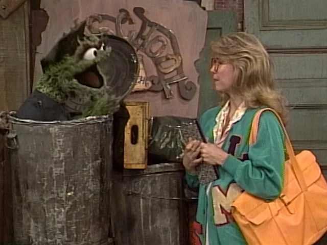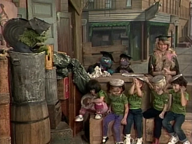 SCENE 1 | A cheerful young lady named Amelia Adams (Teri Garr) applies to attend Oscar's New School for Grouch Research. Oscar (dressed in a tattered cap and mortarboard) doesn't believe that she's fit for such a school, but Amelia is persistent as she's gone to just about every other kind of school. Oscar gives Amelia her first lesson - to cut out her excessive use of the phrase, "Goody!" Fellow students Luther O'Possum and Essie Silverman arrive late and are just as nice as Amelia, further irritating Oscar. He gives them high marks on their tardiness, though - Grouches should always be late. |
