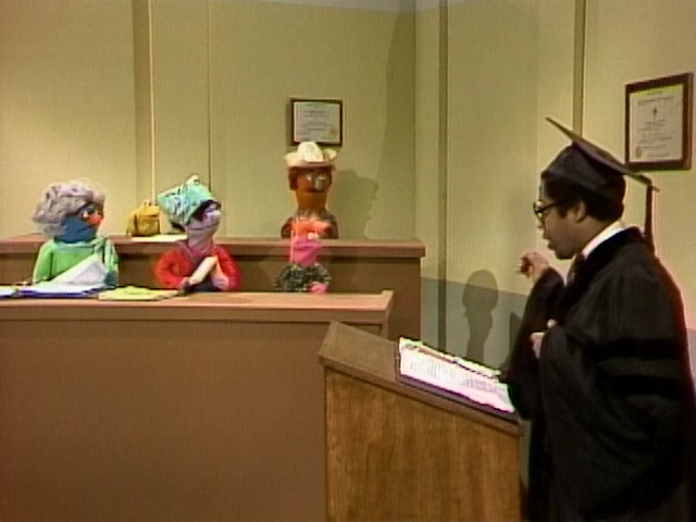 Muppets / Cast | Professor David lectures his class on trees. He says they are only good for looking at and leaning against, but they mention other uses for them. (First: Episode 1584) |