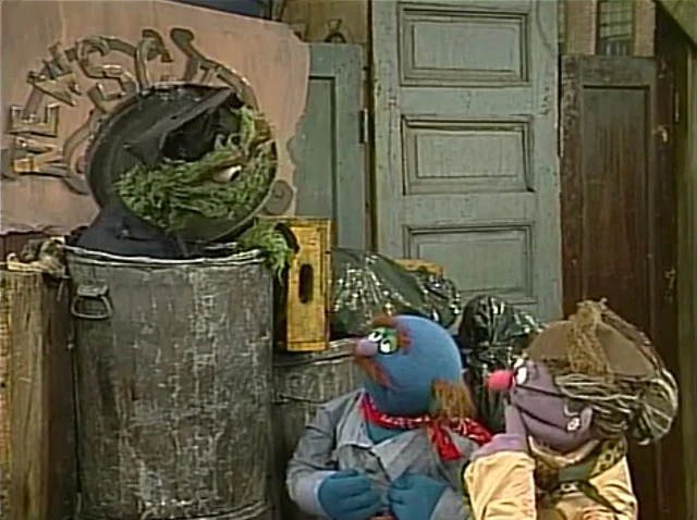 SCENE 2 | Oscar calls his school to session, and asks his students what a Grouch would say if a neighbor stopped by their trash can. None of them get it right as they naturally would use pleasantries such as inviting them in for pie or come up with excuses. Oscar demonstrates the correct answer: you'd yell, "GET LOST!" Amelia, Essie, and Luther hightail it, and Oscar gets the feeling this is gonna be a long day... |