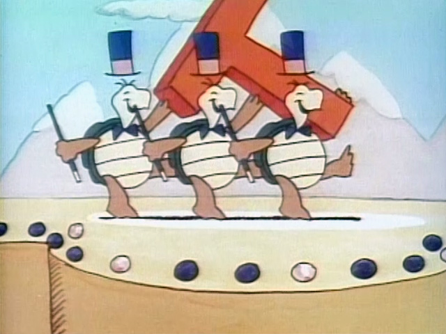 Cartoon | Three turtles present the letter T. (First: Episode 1666) |
