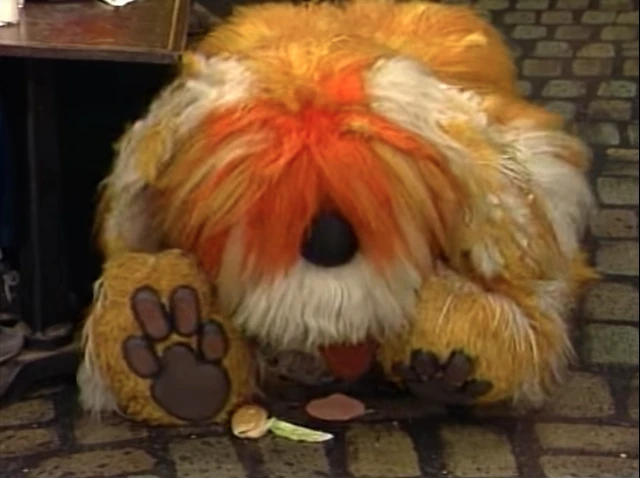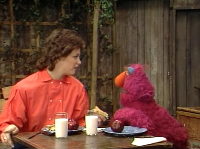 SCENE 3 | Telly has lunch with Geri, but feels bad when he accidentally drops his sandwich on the ground. Geri assures him this happens to all kids, but it was even more difficult for her because of her condition. She recalls her family having to tape a spoon to her hand to help her eat. She goes on to say that with practice, she was able to eat just fine, but claims the only one upset about was the family dog. Telly doesn't understand until Geri points to Barkley, who chows down on Telly's dropped sandwich. |