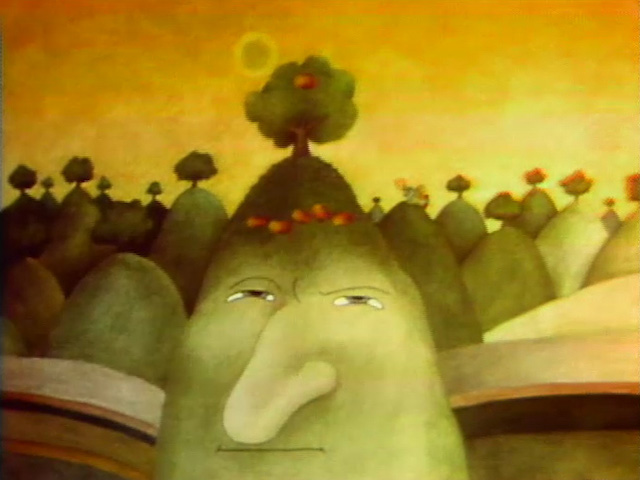 Animation | Apples fall from a tree, which bothers the hill beneath it, as Irish music underscores the segment. Artist: Etienne Delessert (First: Episode 0628) |