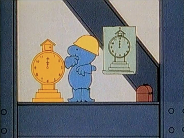 Cartoon | At a construction site, a blue man builds a cuckoo clock, which gives him his lunch. (First: Episode 1924) |
