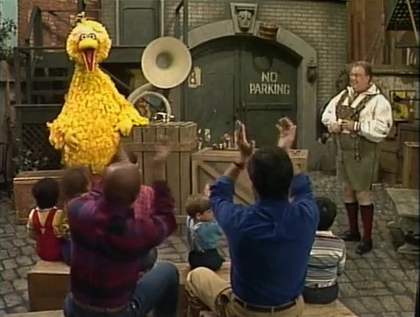 Celebrity | Yosh Shmenge (John Candy) performs the "Alphabet Polka" with Big Bird and Slimey's worm polka band. |
