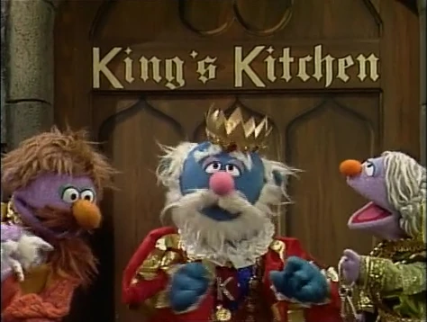 SCENE 1 cont'd | In today's edition of All My Letters, the letter K is the focus as a king (Jerry Nelson) is unable to open the door to the kitchen. The Keeper of the Keys (Fran Brill) says the kitchen key is under the purview of the Keeper of the Kitchen. Instead, the Keeper of the Kitten (Richard Hunt) arrives and reports the Keeper of the Kitchen quit and took the key with him. The show begins its transition to the letter L as the crew tries to locate a locksmith. |