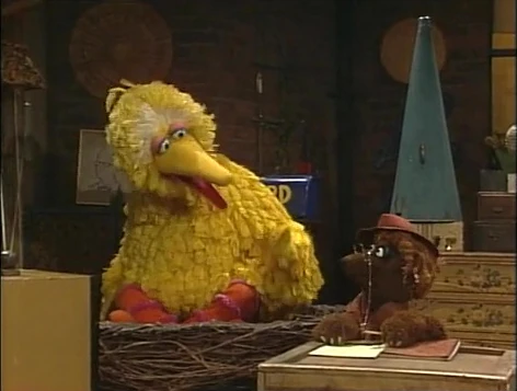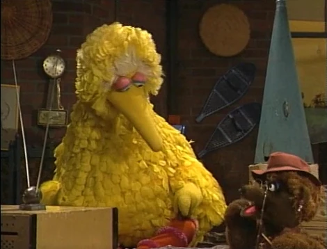SCENE 1 cont'd | Big Bird asks where Flo was on the program and is astonished to learn that Flo actually writes the dialogue used on the show. He then helps her think of some L words for the next episode. |