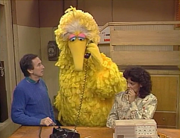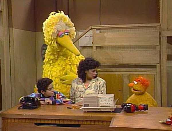 SCENE 2 | Bob stops by the Fix-it Shop having heard of what's happened, and sees how upset Maria is now that she speaks like a duck. He offers to help, but can't understand her at all. Luckily, Big Bird understands duck fluently and is able to translate when someone calls the shop on the phone. "Maria, welcome to the bird family!" he consolingly tells Maria, who collapses in frustration. |